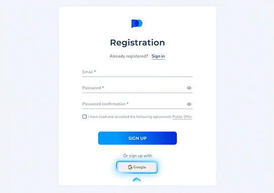 Registration is a quite simple process. You are able to choose one of the ways for registration: sign up with an email address, use your Facebook account or Google account.