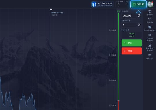 Trgovanje na PO TRADE je lako kao izbrojati 1, 2, 3! Izaberite imovinu kojom želite trgovati, podesite svoj omiljeni raspored grafikona i omogućite indikatore za bolju analizu tržišta. Potom podesite iznos trgovine, vreme kupovine i plasirajte nalog po kojem će cena ili ići naniže ili naviše.